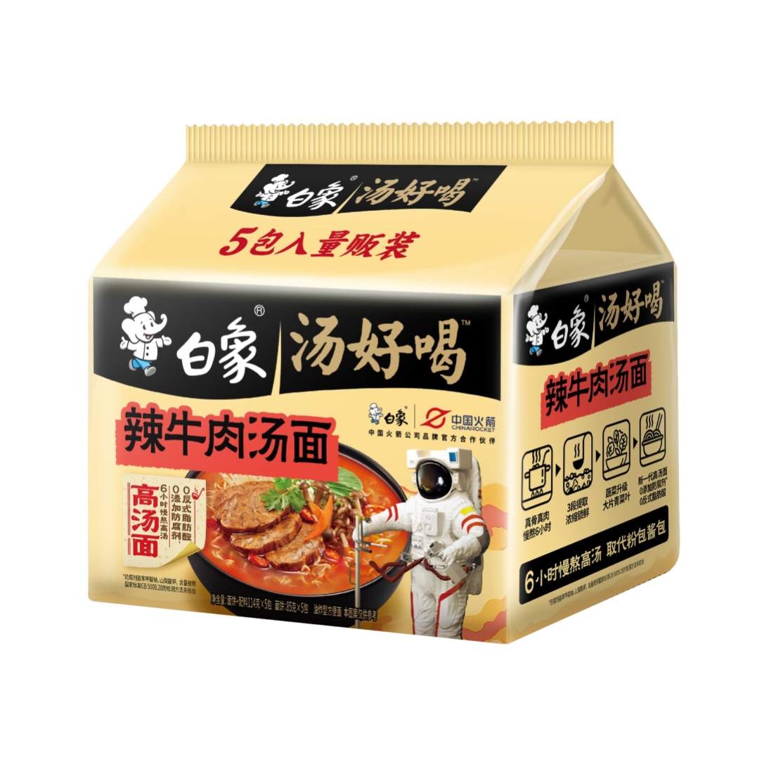 白象汤好喝辣牛肉汤面袋面(五连包)(114g*5*6)