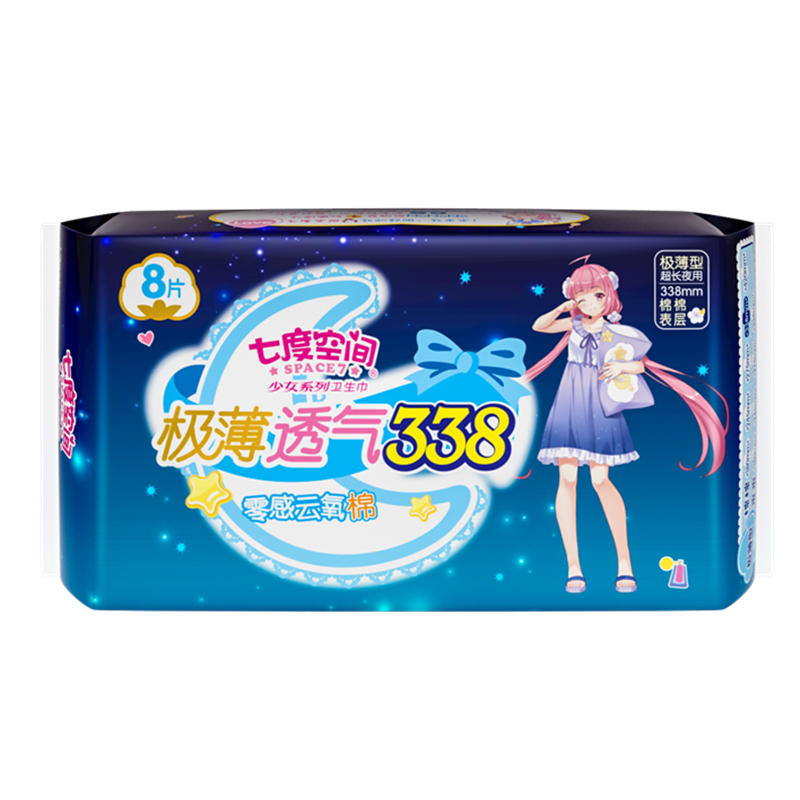 QSD8807七度空间少女系列棉极薄夜用卫生巾338mm