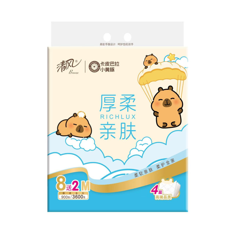 清风卡皮巴拉抽纸90抽10包装1*6提