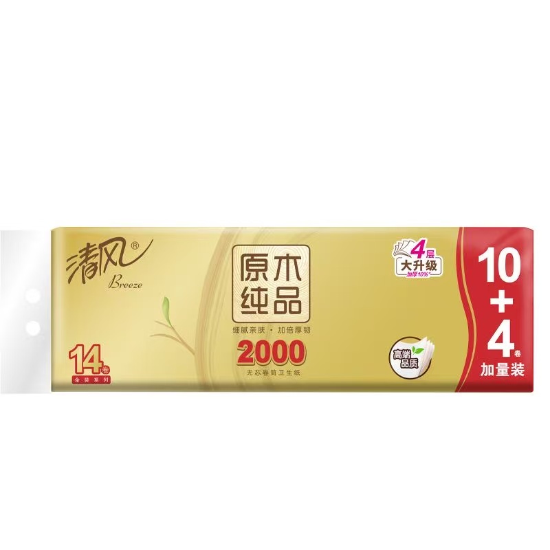 清风2000原木纯品无芯卷纸1*6提