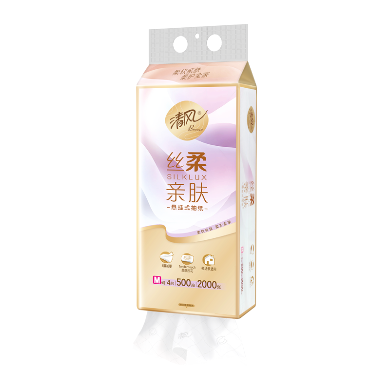 清风丝柔亲肤悬挂式抽纸500抽1*12提