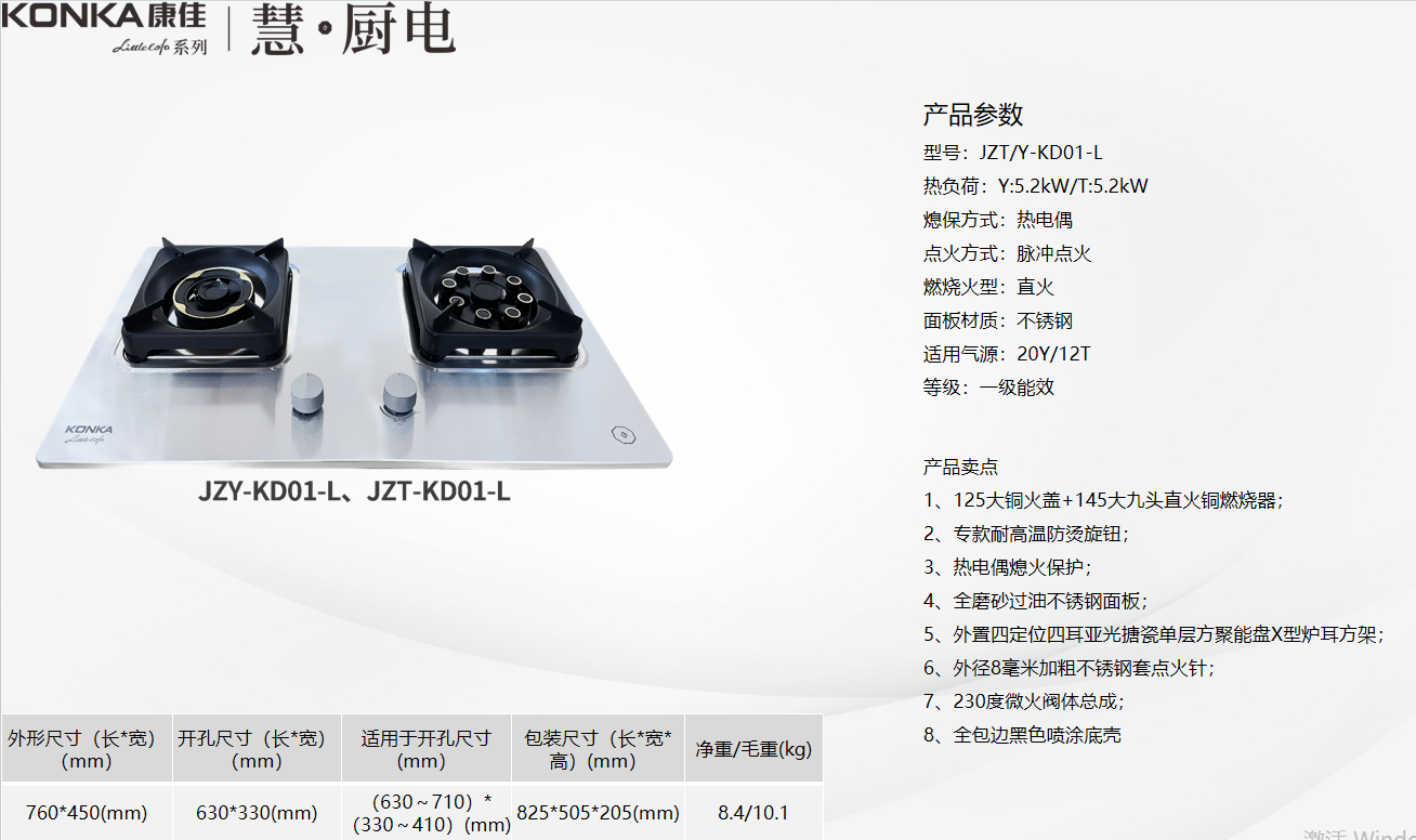 康佳燃气灶一级能效KD01-L